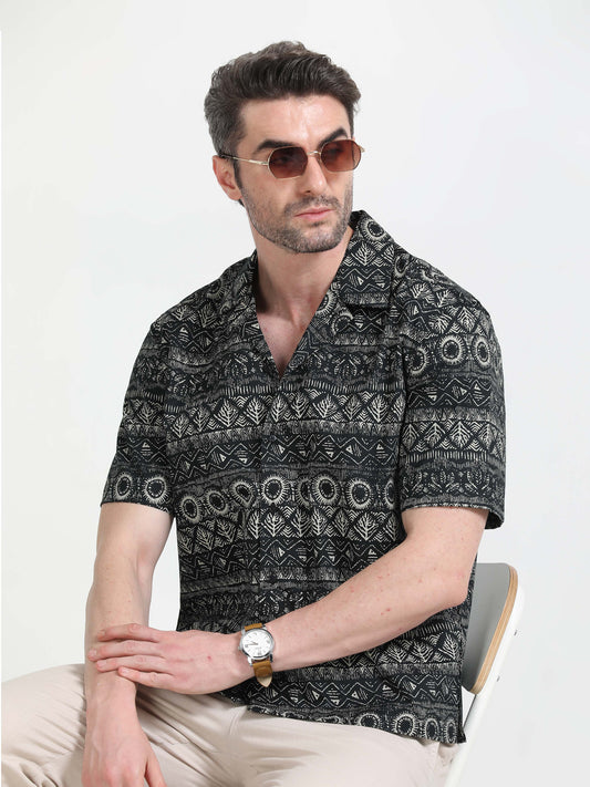 Nova Scottia Men’s Cuban collar drop shoulder Black