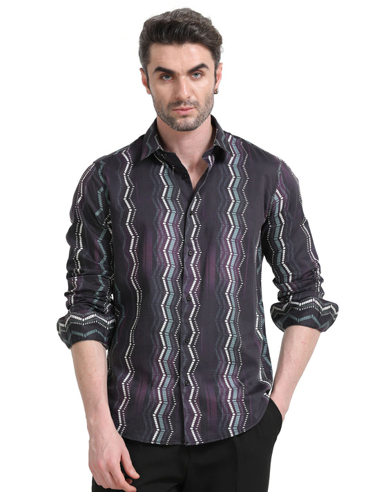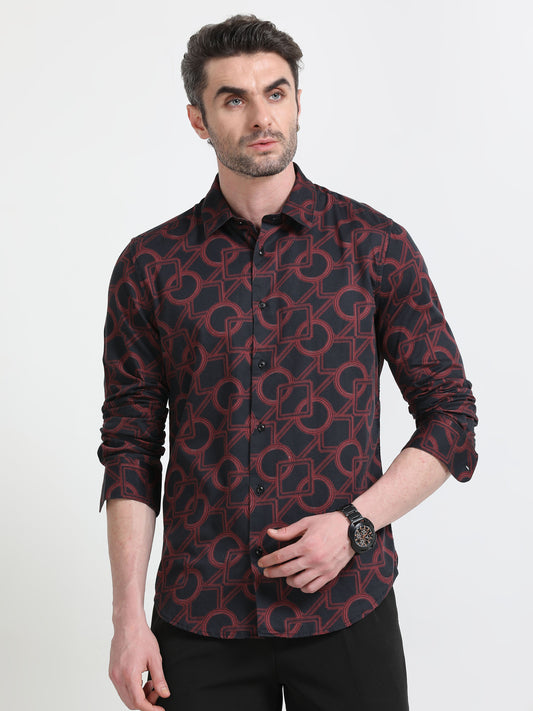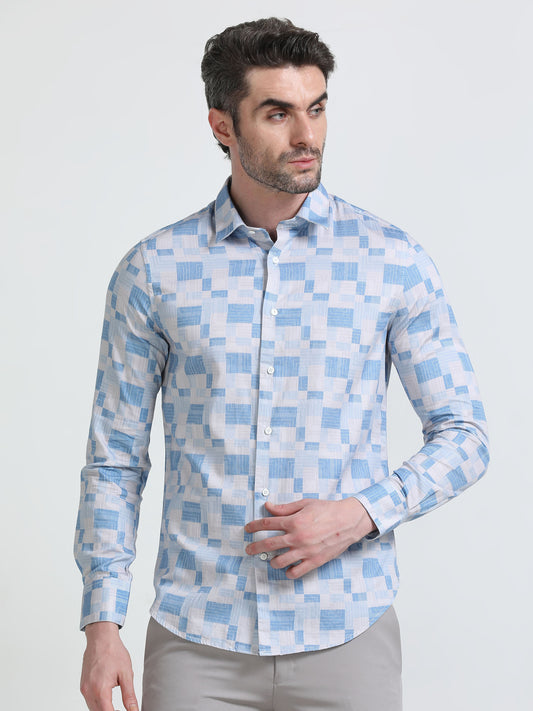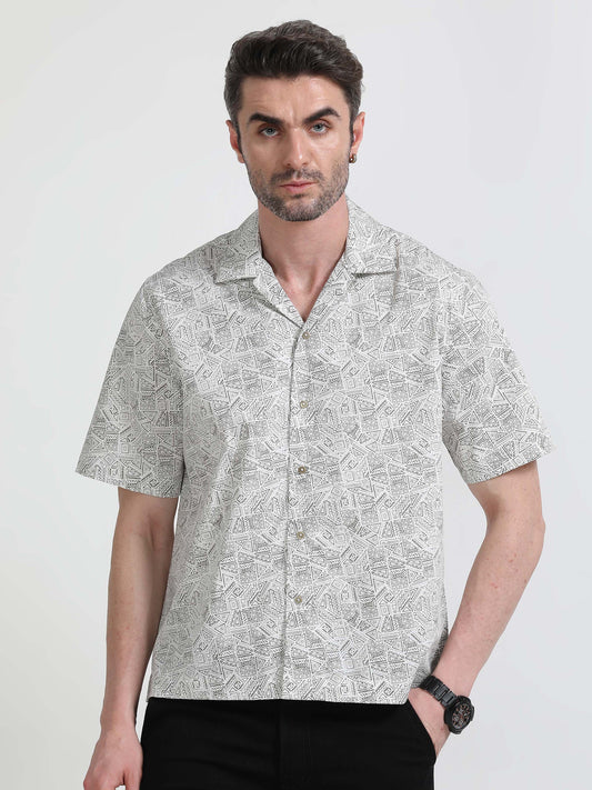 Nova Scottia Men’s Cuban collar drop shoulder Printed White